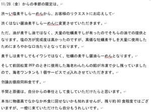 渋~い塩煮干しらーめんから、お客様のリクエストにお応えして