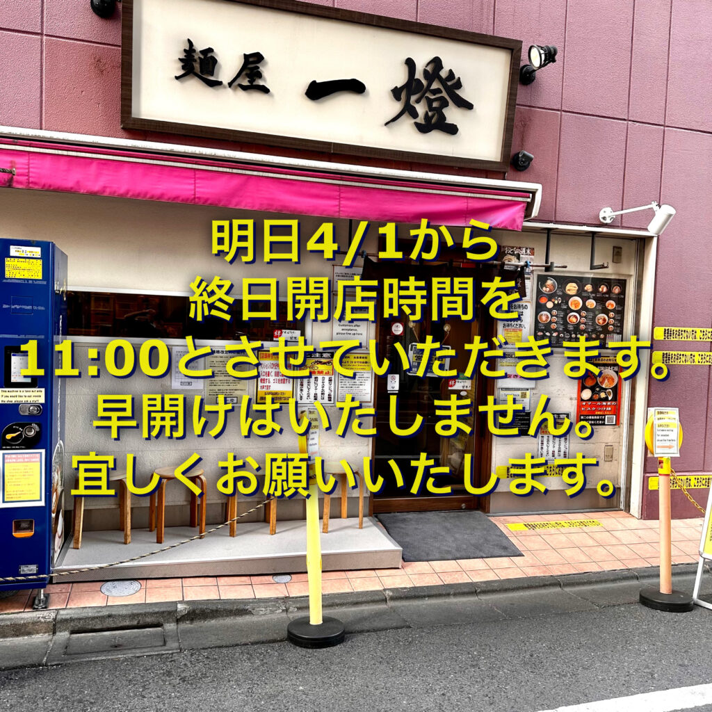 麺屋一燈 開店時間のお知らせ